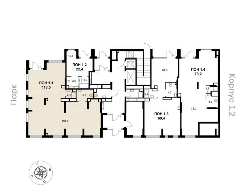 Общая площадь: 118.5 м2