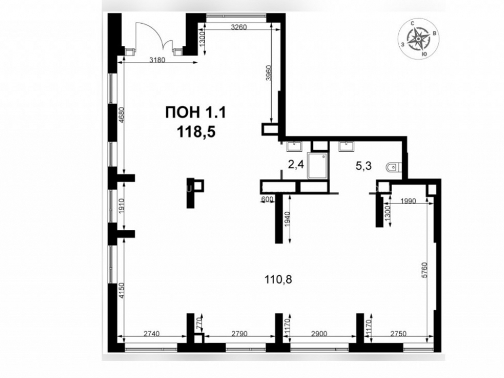 Корпус 1.3, первая линия. Угловое помещение общей площадью – 118.5 кв. м., 1 этаж.