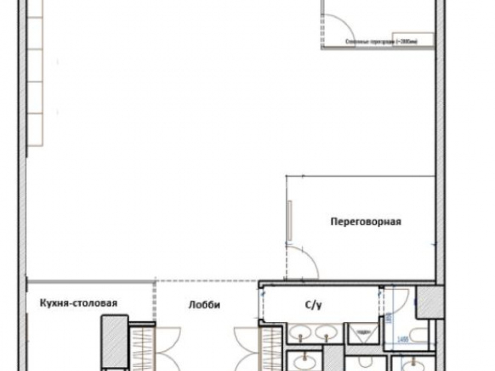 Общая площадь - 190,3м2, включает в себя : общее простаранство, зона ресепшн, 2 просторных санузла, кухню, кабинет руководителя, переговорную комнату и небольшую серверную. Дополнительно предлагается подсобное помещение на этаже , площадью 18,2м2.