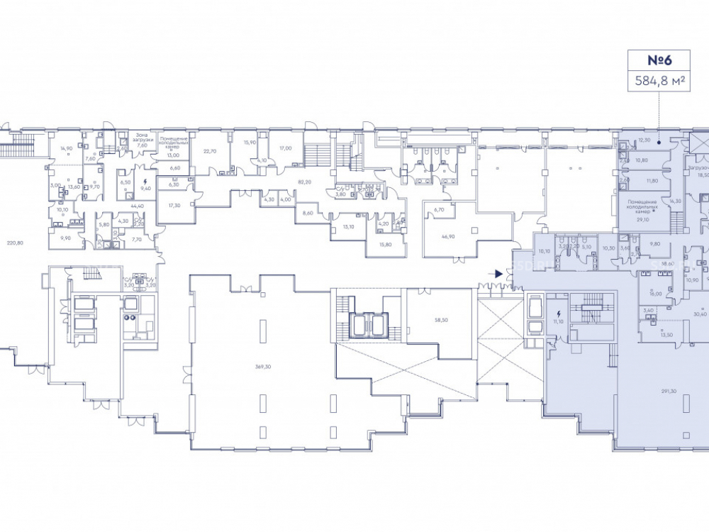Помещение общей площадью - 584, 8 кв.м., расположено на 1 этаже, имеет зальную планировку, высота потолка - 5м, электрическая мощность - 584 кВт. Три входа в помещение: один из галерии, два - со двора. Гостевая подземная парковка. Современные системы вентиляции, кондиционирования, пожаротушения, дымоудаления, отвечающие всем нормам действующего законодательства.