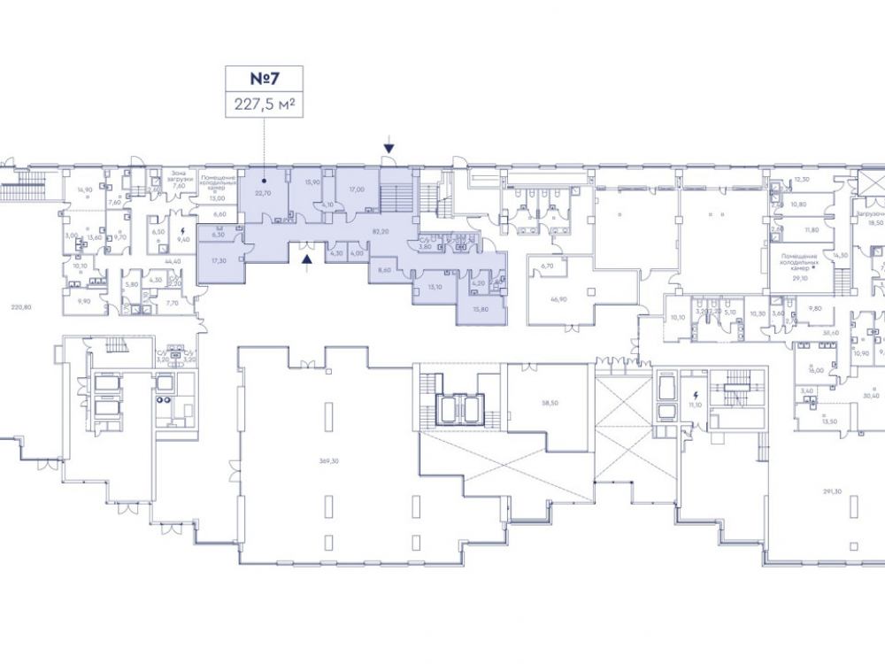 Помещение общей площадью - 227,5 кв.м., расположено на 1 этаже, имеет зальную планировку, высота потолка - 5м, электрическая мощность - 227 кВт. Два входа в помещение: один из галерии 1-го этажа, второй - со двора. Гостевая подземная парковка. Современные системы вентиляции, кондиционирования, пожаротушения, дымоудаления, отвечающие всем нормам действующего законодательства.