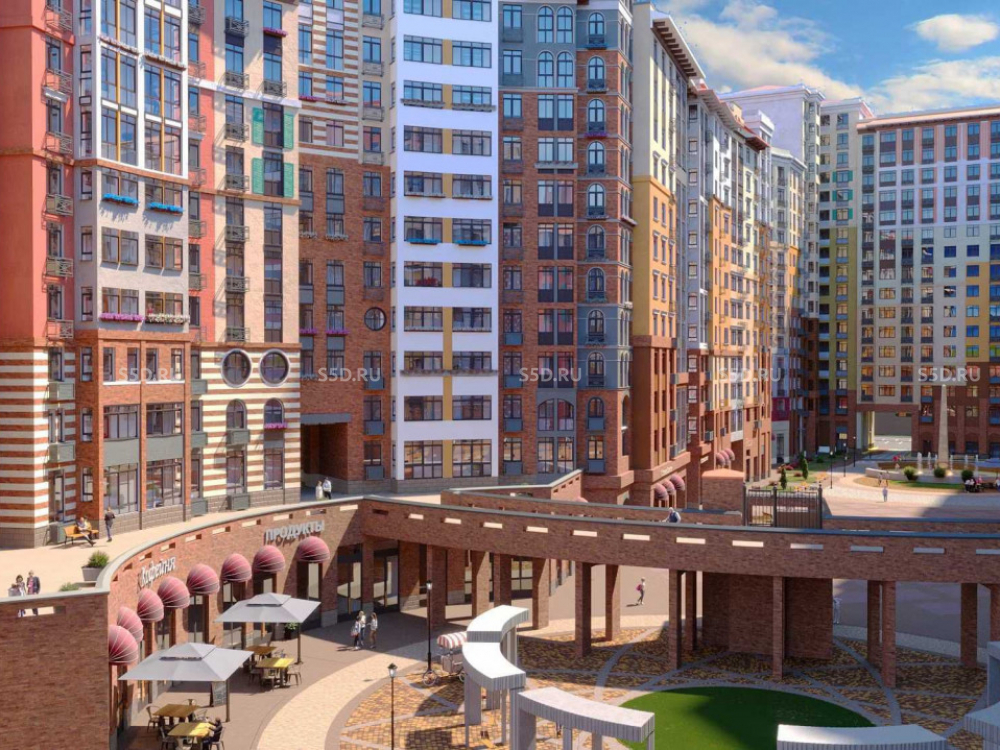 Особенность ЖК — двухуровневая модель организации пространства. Коммерческие объекты и дороги расположены на этаж ниже жилой зоны.