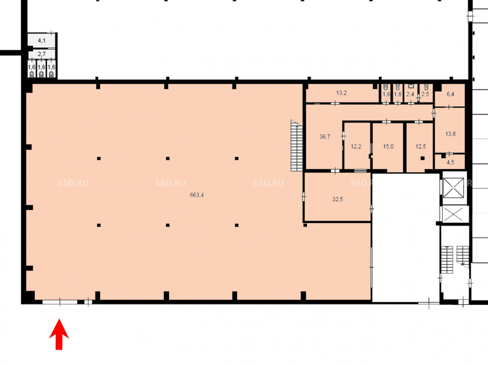 Помещение общей площадью – 941.8 кв. м., Основной зал - 664 м2, Офис 1 этаж- 156.8 м2, Мезонин - 121.6м2, 1 этаж, 1 ворота автоматические, Смешанная планировка. Высота потолков – 6 м. Электрическая мощность – 150 кВт. (1 мегаватт в резерве), парковка на 10м/м
