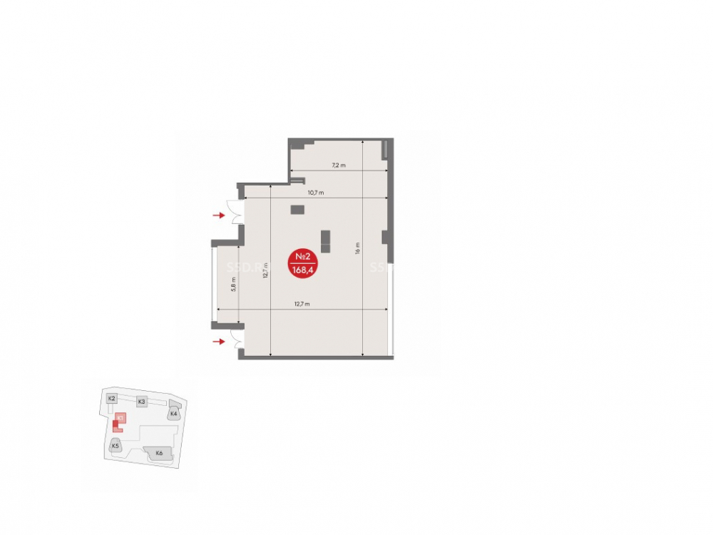 1-й этаж. Общая площадь 168.4 м². Два входа с улицы. Свободная планировка. Высота потолков 3,2 м. Витринное остекление в пол. Выделенная электрическая мощность 0,3 квт/м. Все центральные коммуникации. Возможность организовать летнюю веранду. Гостевой подземный паркинг. Вывеска на фасаде. Дополнительный поток от инфраструктурных объектов.