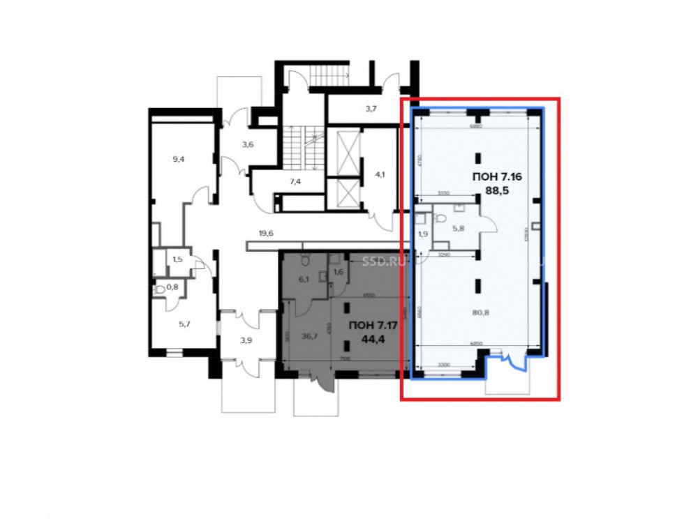 Общая площадь: 88.6 м2, назначение: свободное назначение, количество входов: 2 - оба на 1ю линию, количество этажей в помещении: 1, высота потолков: 4.1м (возможна организация антресоли), витринное остекление. Выделенная мощность: 18кВт, Вентиляция: 200x200; Ш100; Нагрузка на пол: 800 кг/м²