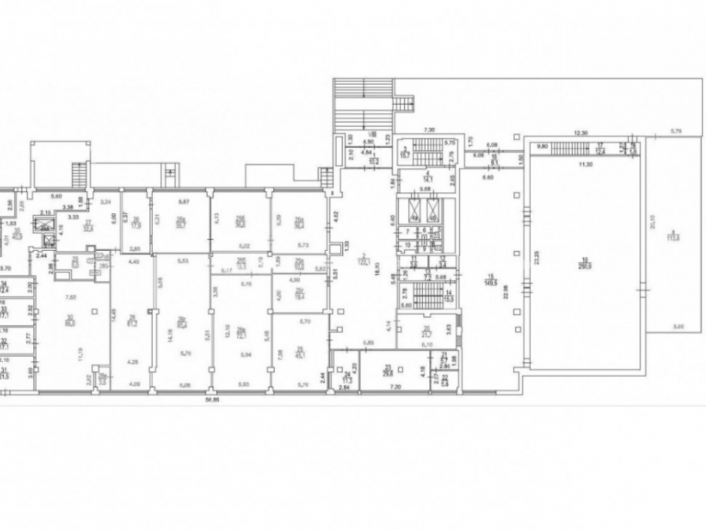 8 этажей. подвал – 359,6 кв.м., цоколь – 1282,9 кв.м., тех.подвал – 381,4 кв.м.