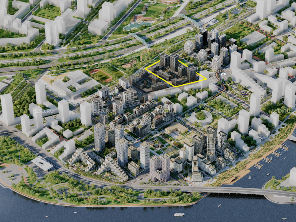 ЖК включает 109 Га благоусроенной территории, через реку по мосту можно попасть в парк развлечений Остров мечты.