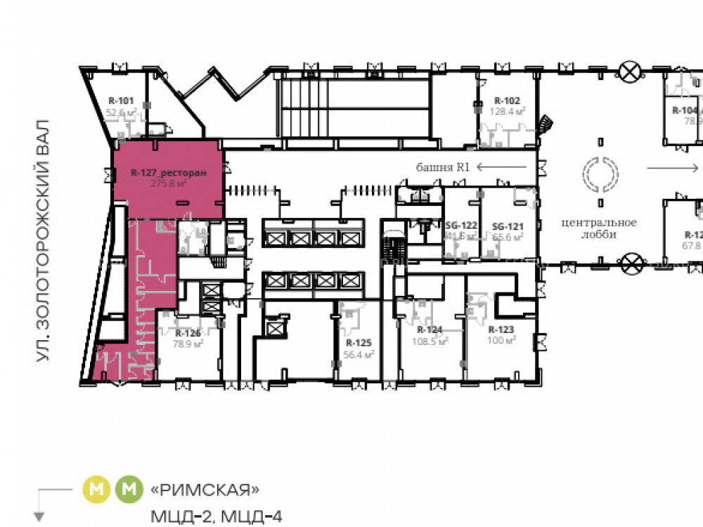 Москва, ул. Золоторожский Вал, ЖК «Rise» корпус R1 /275.8 м²/Продажа торговой площади под ресторан