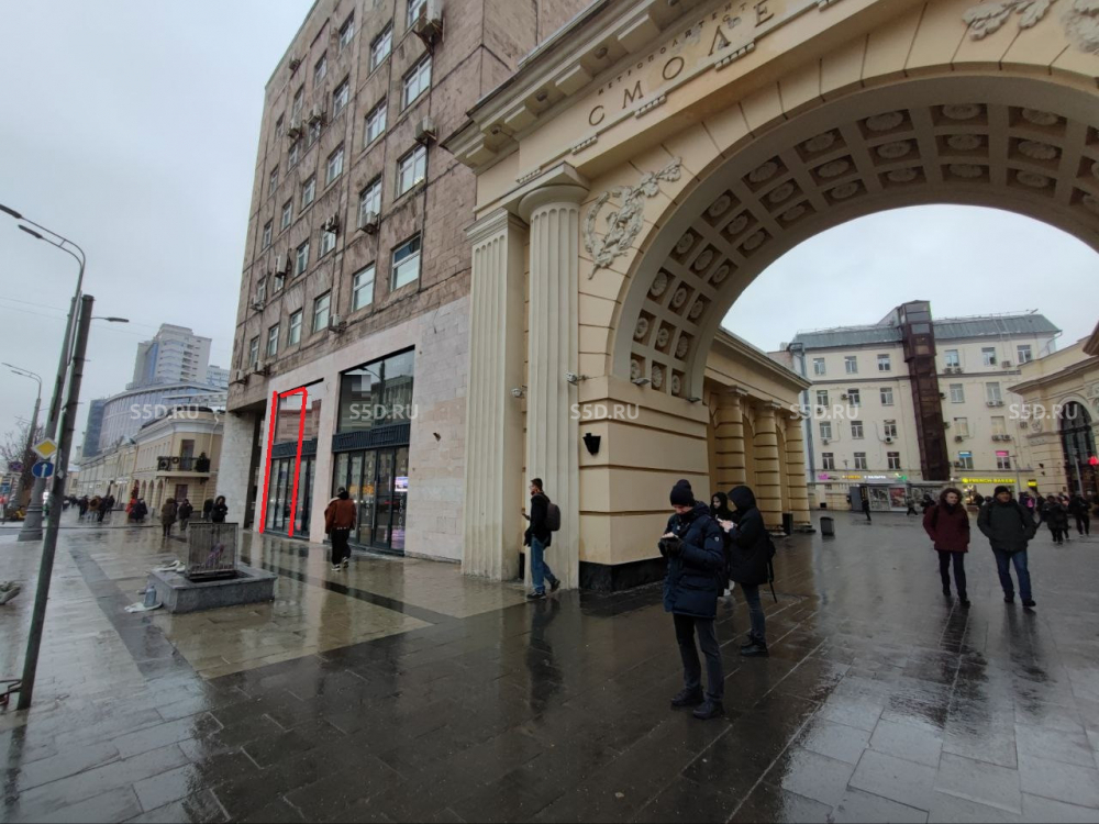Адрес: г. Москва, ЦАО, район Арбат, Карманицкий переулок, 9. Объект расположен в одной из самых проходных точек центра Москвы— на первой линии Садового кольца, в 20 метрах от выхода из метро «Смоленская». Витрины выходят на основную транспортную артерию, обеспечивая максимальную видимость и круглосуточный рекламный эффект. Место характеризуется сверхинтенсивным пешеходным и автомобильным трафиком.