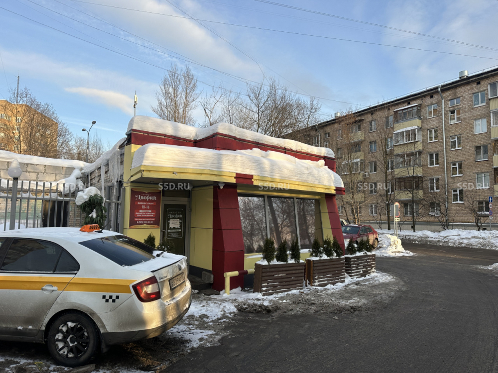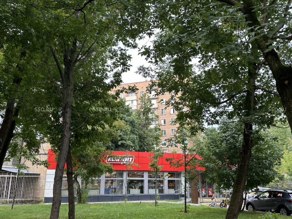Торговое помещение с супермаркетом "Магнит" и кафе в пристроенной части жилого дома. 6 минут пешком от метро Белорусская. Хорошо просматривается со стороны проезжей части и соседних зданий. Плотный жилой массив. Есть парковка перед фасадом.