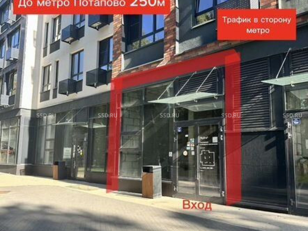 Ближайшая станция метро - Потапово, 3 минуты пешком. Активно развивающийся район. Витринные окна с хорошей визуализацией гарантируют высокий рекламный потенциал. Напротив данного помещения, в 200 метрах, находится остановка общественного транспорта и станция метро Потапово. Соседями являются: Пятерочка, Горздрав, Wildberries.