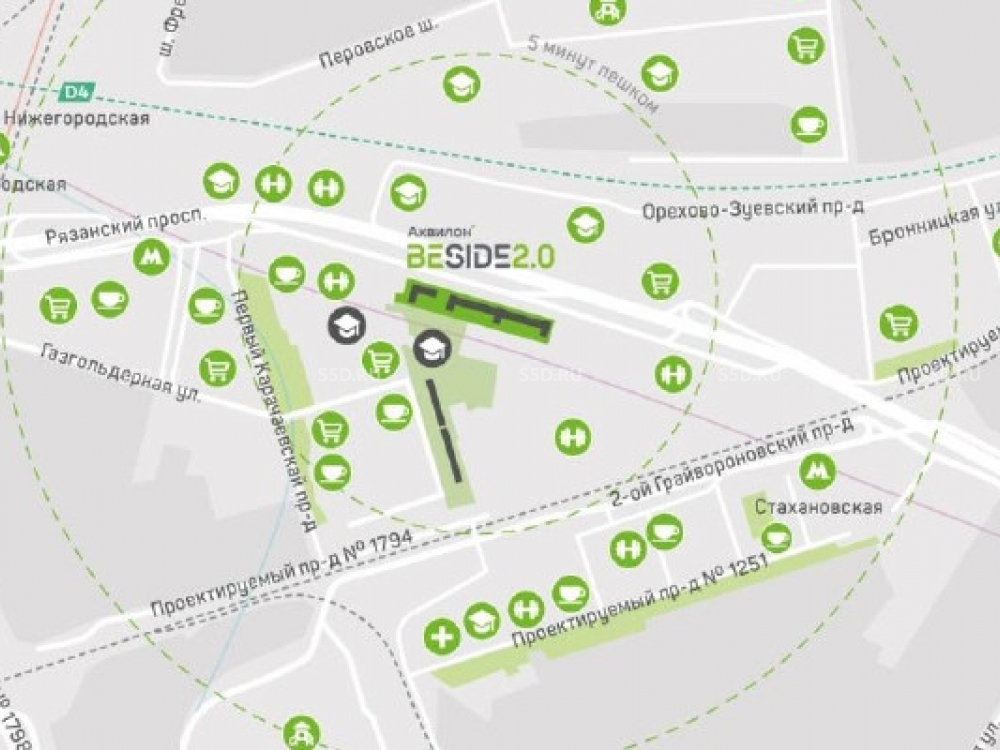 Ближайшие станции метро: Нижегородская – 10 мин. пешком, Стахановская – 12 мин. пешком.