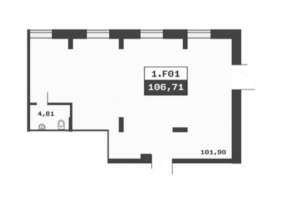 Площадь - 106.7 м²., располагается на 1 этаже, отдельный вход , высота потолков - 4.15 м., без отделки.