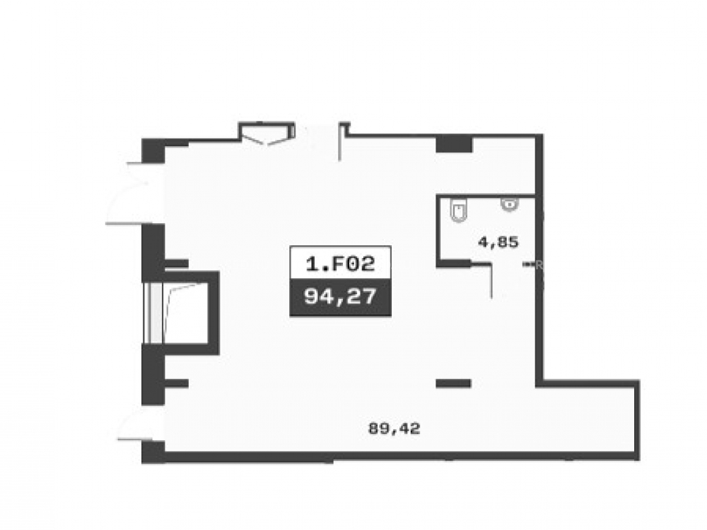 Площадь - 94.3 м²., располагается на 1 этаже, отдельный вход , высота потолков - 4.15 м., без отделки.