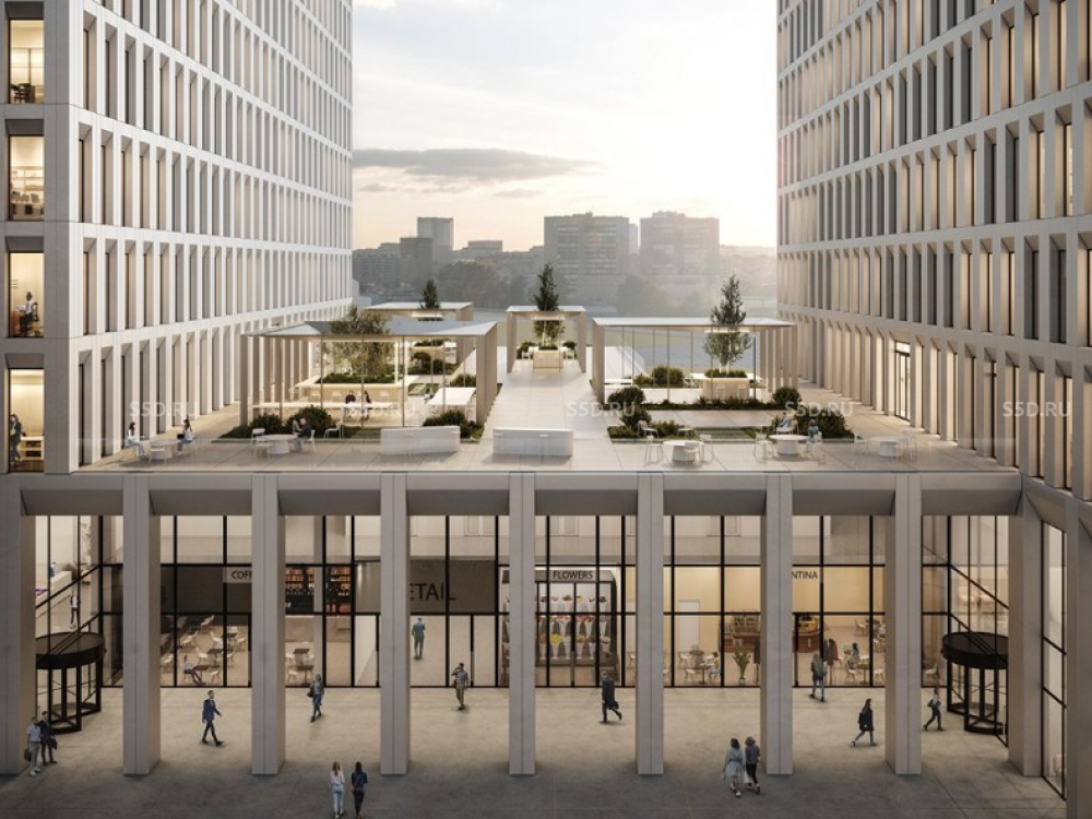 Двухуровневый стилобат сформирован по принципу «сухие ноги»