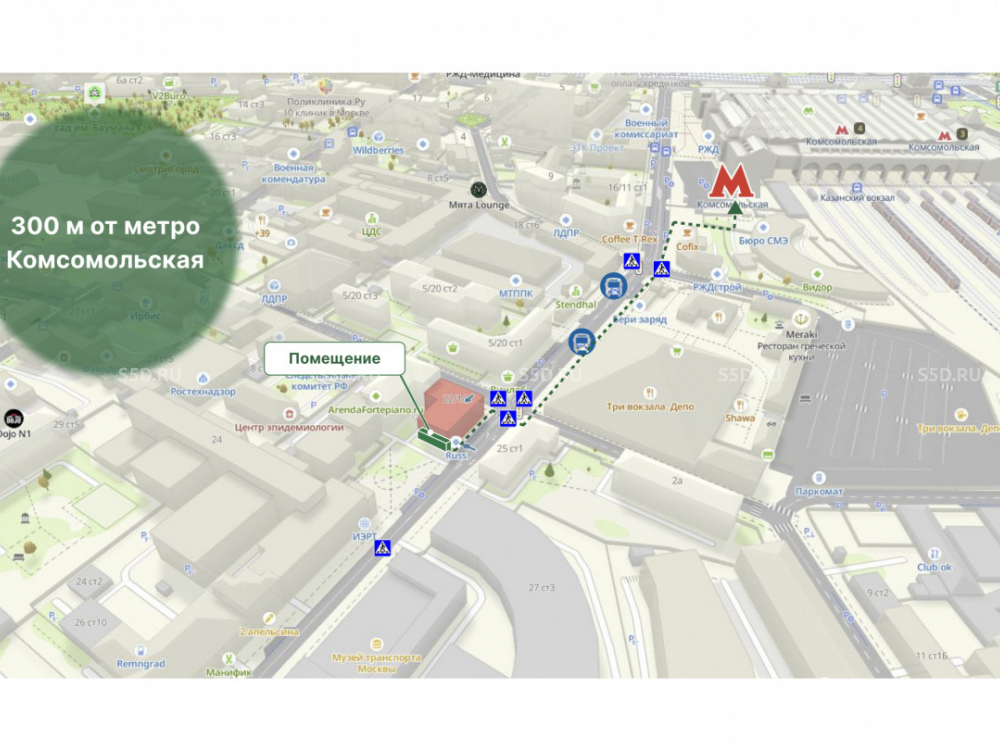 Интенсивный пешеходный и автомобильный трафик. Интенсивный пешеходный и автомобильный трафик. Более 11 000 жителей в радиусе 500 м. Рядом “Три вокзала. Депо”, Институт и музей транспорта Москвы.