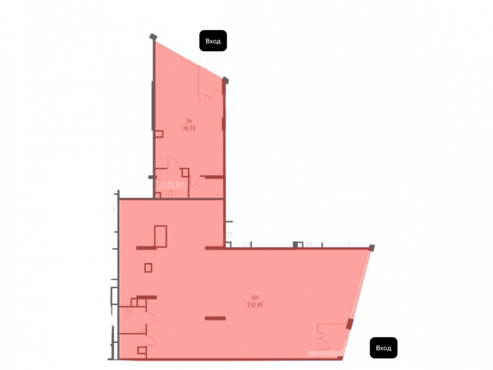 Общая площадь - 305,8 кв.м. (состоящие из двух блоков под объединение площадью 235,4 кв.м. и 70,4 кв.м.);