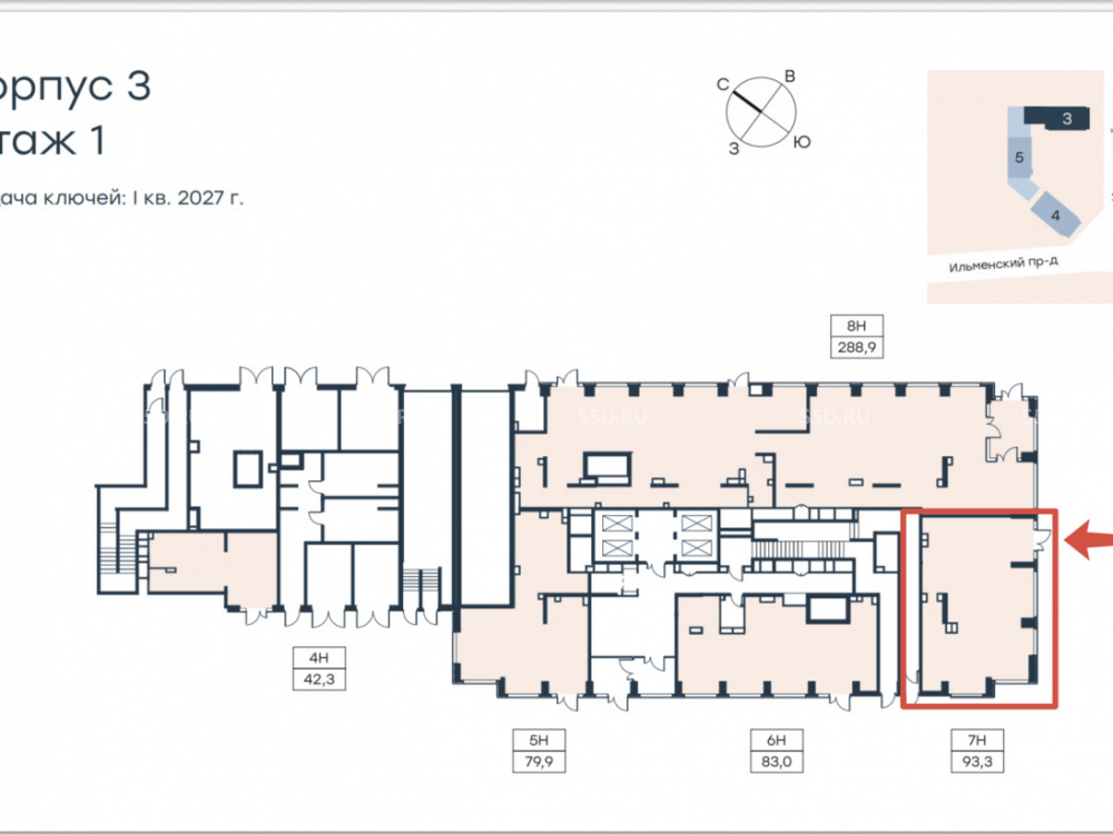 , 1-й этаж, отдельный вход с улицы. Свободная планировка. Электрическая мощность - 17 кВт. Отделка Shell&Cor. Ключи I кв.2027г.