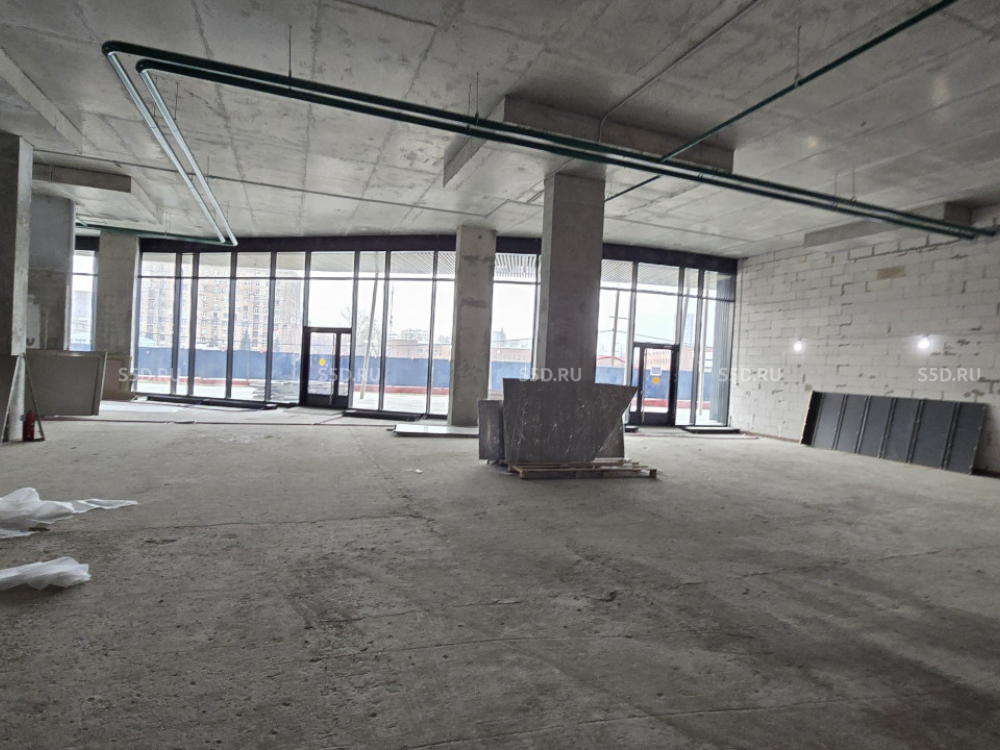1 этаж 16 этажного жилого дома общей площадью 389,5 кв.м. (вся площадь в одном уровне), отдельные входные группы с фасада и 1 с паркинга, высота потолков 5,3 м.; Открытая планировка. Витринное остекление. Электрическая мощность 90 кВт.; Без отделки.
