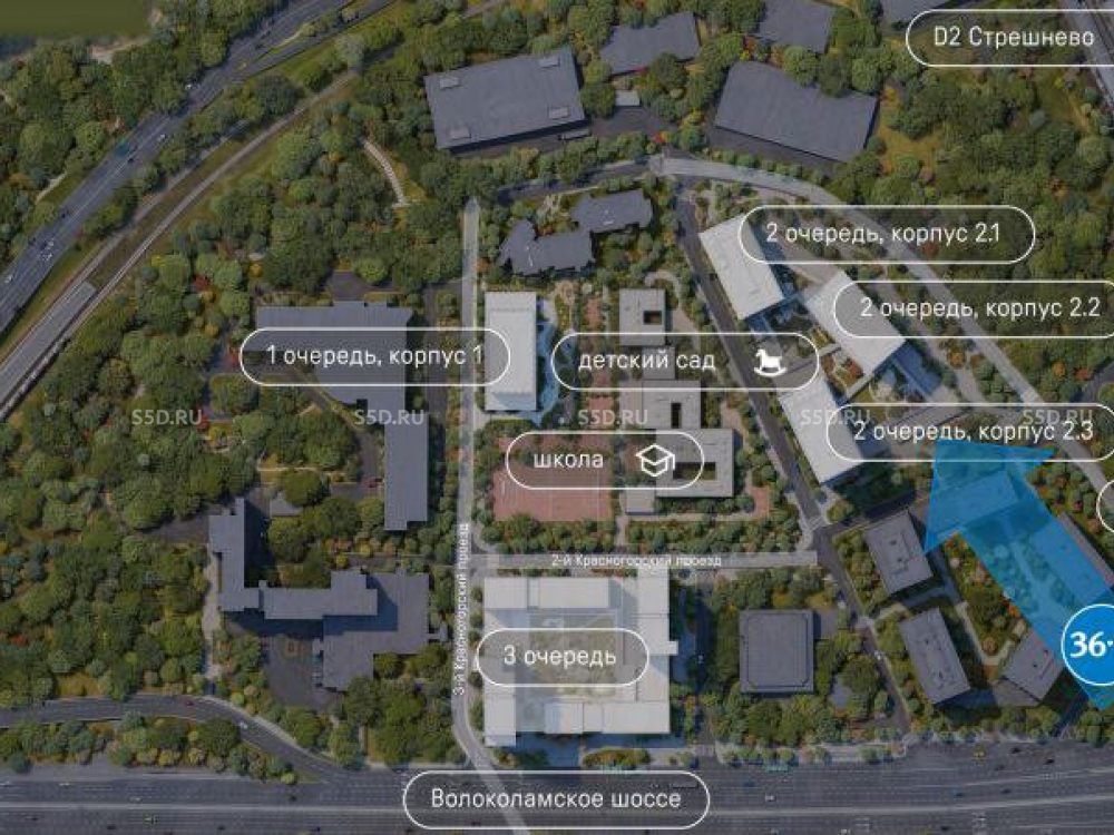 Объект расположен в ЖК бизнес-класса «Moments» на первой линии. Ключевое преимущество — исключительная логистика: помещение находится в 109 метрах от входа на станцию МЦК «Стрешнево», формируя пересадочный узел с будущим МЦД-3 «Нахабино-Подольск». Рядом расположены остановки наземного транспорта с маршрутами в центр Москвы и районы вдоль Волоколамского шоссе. Район характеризуется плотной застройкой и активным ростом населения. Трафик формируется за счет: Новоселов 1-й и 2-й очередей ЖК «Moments» (1656 квартир, до 6000 жителей) со сдачей до 30.08.2027 года; Жителей полностью заселенного комплекса с апартаментами (более 1500 лотов); Посетителей парка Покровское-Стрешнево, медицинского центра и пассажиров транспортного узла.