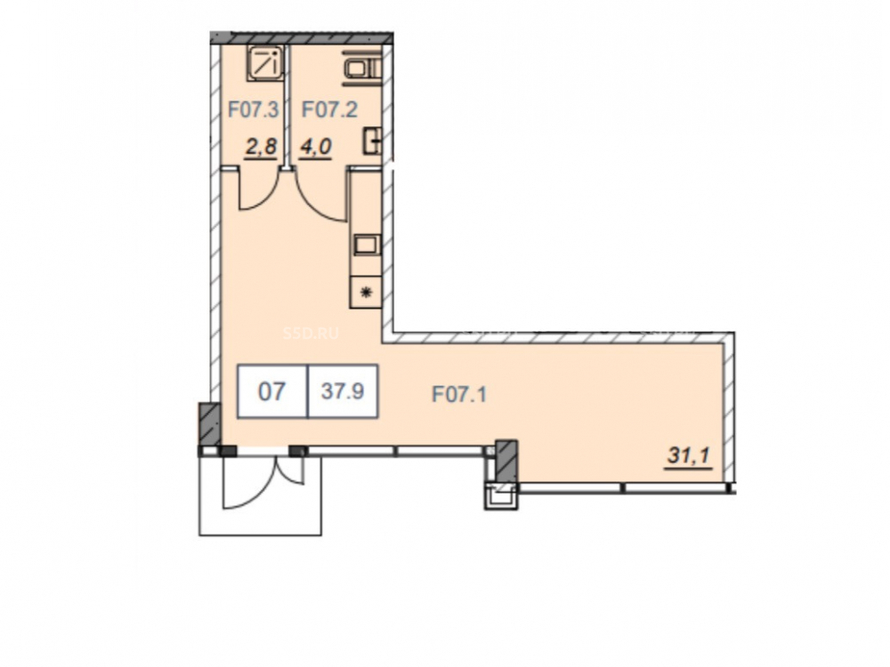 Общая площадь: 37.9 м2