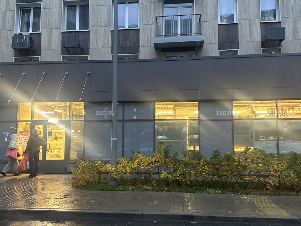 Помещение расположено на 1 этаже жилого 18-ти этажного дома. Отдельный вход с витринным остеклением и отдельный вход со двора. Электрическая мощность – 20 кВт. Высота потолков - 4 м. Парковка перед фасадом.