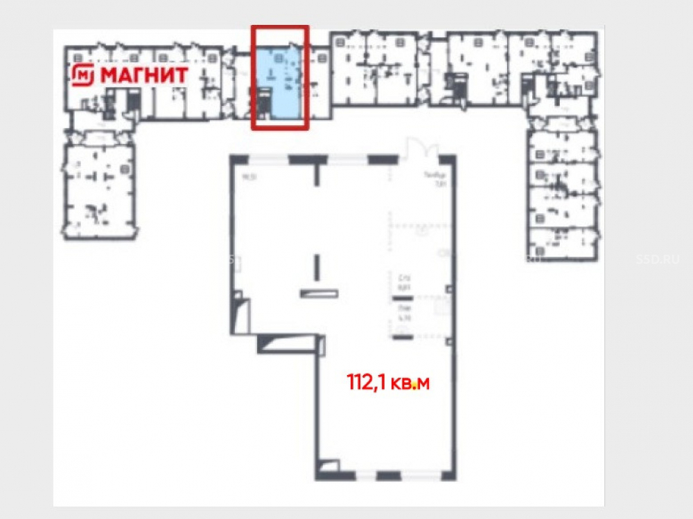 Технические характеристики: общая площадь: 112м2, назначение: свободное, 1 этаж 9и этажной секции количество входов: 1, окна на улицу, высота потолков: 4.1м (возможна организация антресоли), витринное остекление, Выделенная мощность: 22 кВт (с возможностью увеличения), вентиляция: 200x200; Ш100; Нагрузка на пол: 800 кг/м² Идеально делится на два блока!