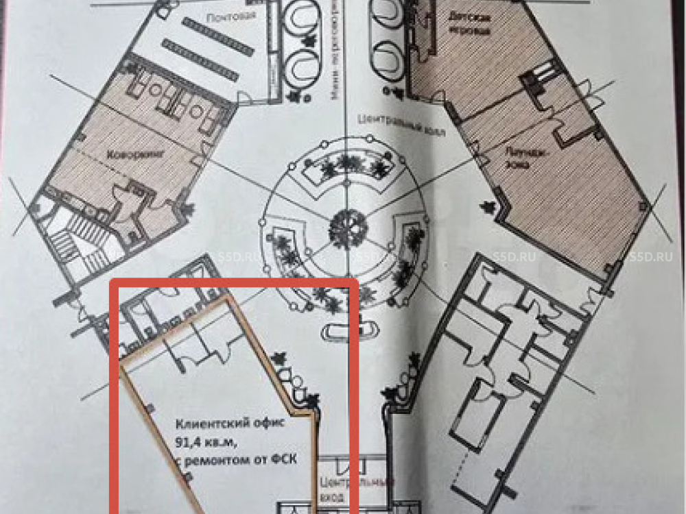 Соседняя дверь – вход в лобби (главный холл) ЖК. Высокая проходимость, ранее был Офис заселения ЖК компании ФСК. Состоит из трех рабочих помещений, (из которых одно ресепшн с зоной приема посетителей и два рабочих офисных), два санузла, небольшие технические помещения и кухонный уголок. Рабочие помещения отделены стеклянной перегородкой, имеются встроенные системы хранения.