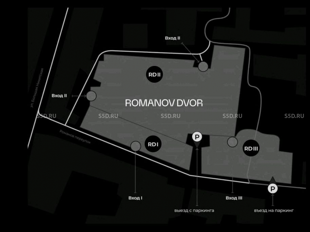 Бизнес-центр премиум-класса расположен в Романовом переулке (д. 4) в историческом центре Москвы, внутри Садового кольца. Объект обладает исключительной транспортной доступностью: 5 минут пешком до станций метро «Александровский Сад», «Библиотека имени Ленина» и «Боровицкая», а также удобный подъезд к основным магистралям - Большой Никитской, Тверской, Воздвиженке и Кремлевской набережной. Престижность локации подчеркивается близостью к Кремлю (700 метров) и развитой инфраструктурой: в шаговой доступности находятся рестораны, бары, кинотеатры, музеи и государственные учреждения.