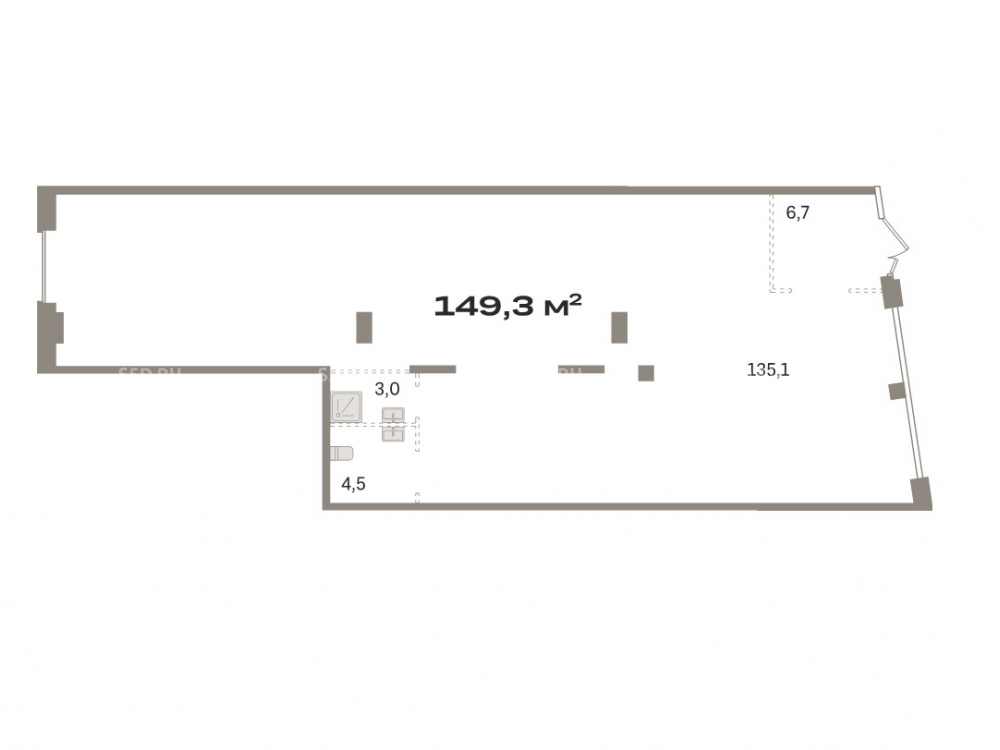 Площадь 149.3 м²., отдельный вход, первый этаж, электрическая мощность 26.87 кВт., высота потолков 4,5 м. Возможна установка вывески. Парковка на улице.