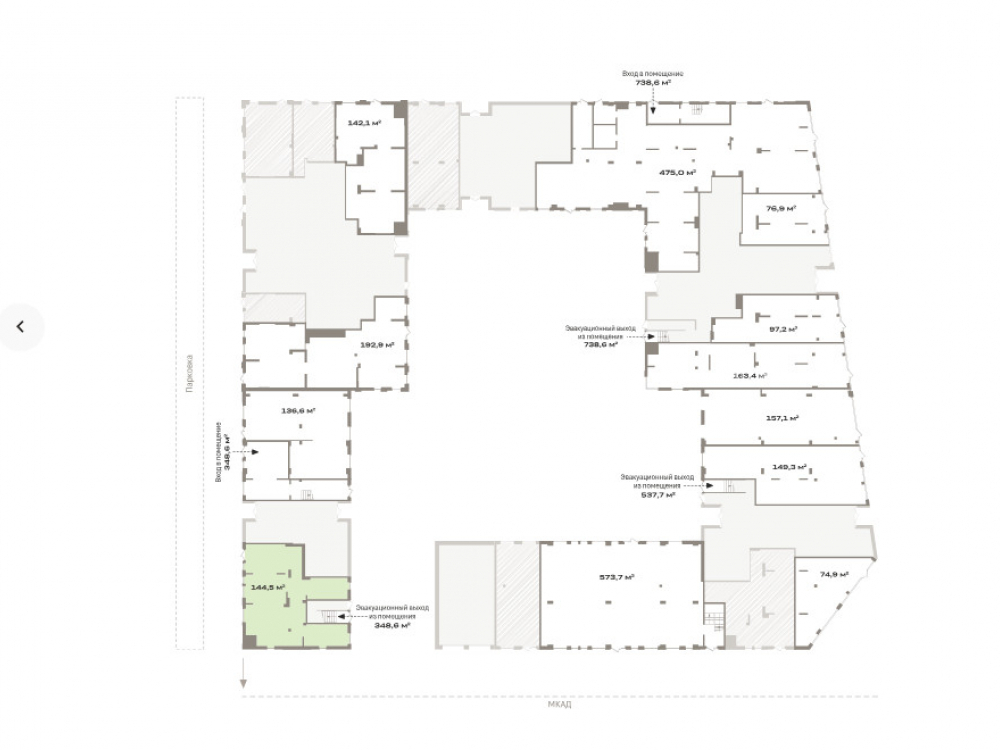Площадь 144.5 м²., угловое, 8 окон, отдельный вход, первый этаж, электрическая мощность 26.01 кВт., высота потолков 4,8 м. Возможна установка вывески. Парковка на улице.