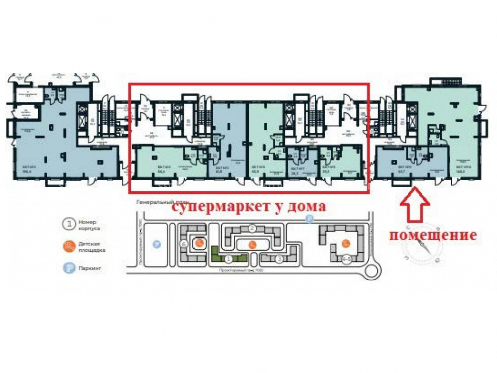 Помещение на 1м этаже общей площадью 65.7 м², Помещение расположено на первой линии домов,