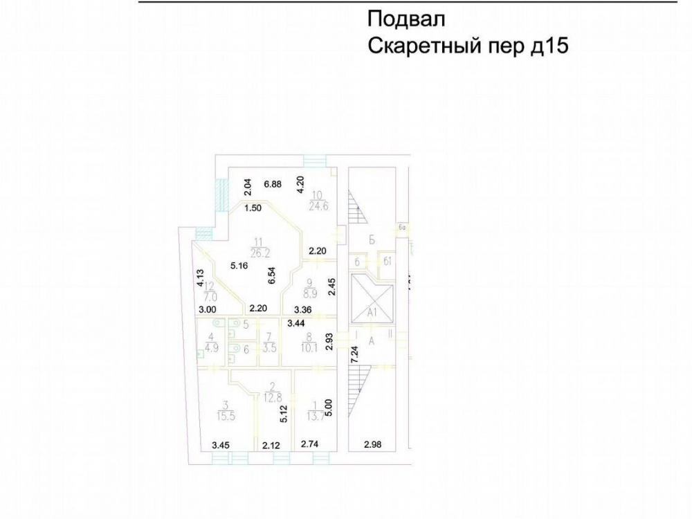 Предлагается к продаже торговое помещение в подвале с окнами в ЦАО, по адресу: Москва, Скатертный пер., 15, площадью 132 кв.м.