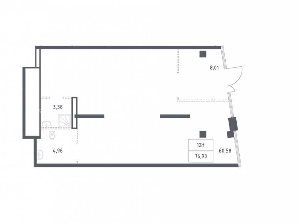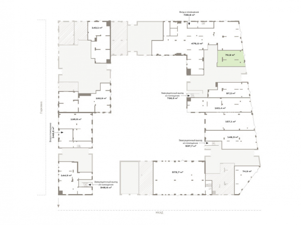 Площадь 76.9 м²., отдельный вход, первый этаж, электрическая мощность 13.84 кВт., высота потолков 4,2 м. Возможна установка вывески. Парковка на улице.