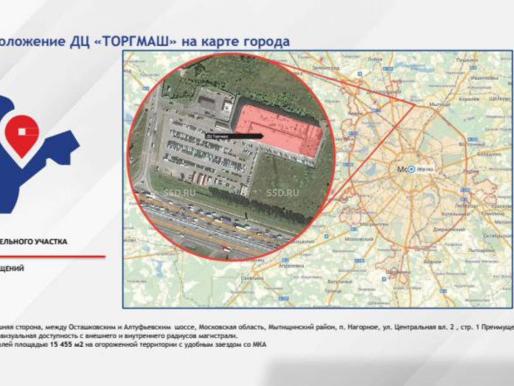 Транспортная доступность: Прямой заезд с МКАД. Ближайшие станции метро «Алтуфьево» (15-20 мин. на транспорте) и «ВДНХ» (20-25 мин.). Остановки наземного транспорта в шаговой доступности. Развитая инфраструктура: в районе расположены торговые центры, гипермаркеты, кафе, банки и жилые массивы.