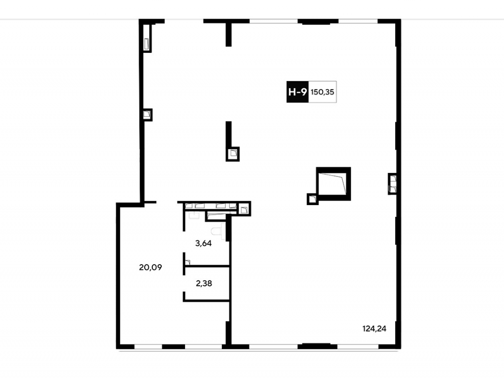 Площадь 150.3 м²., располагается на 1 этаже, отдельный вход , высота потолков - 4.55 м., без отделки, мощность электричества 15.03 кВт.