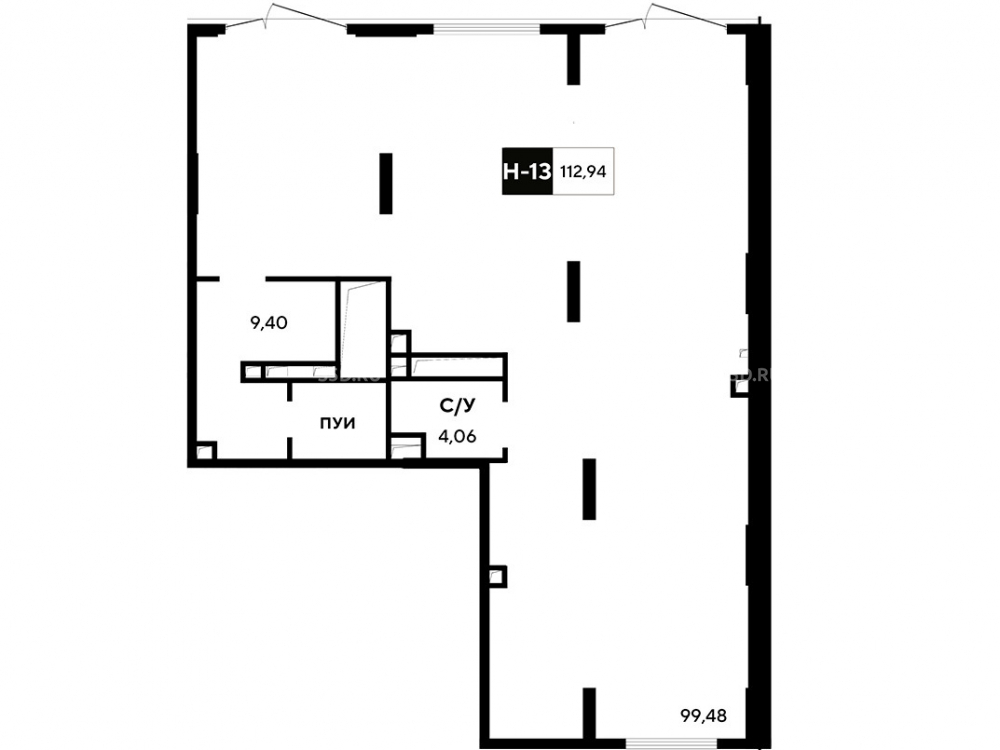 Площадь 112.9 м²., располагается на 1 этаже, отдельный вход , высота потолков - 4.4 м., без отделки, мощность электричества 11.29 кВт.