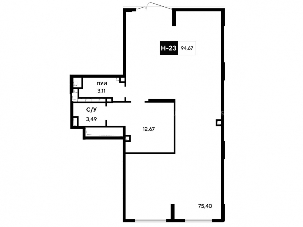 Площадь 94.7 м², располагается на 1 этаже, отдельный вход , высота потолков - 4.25 м., без отделки, мощность электричества 9.46 кВт.