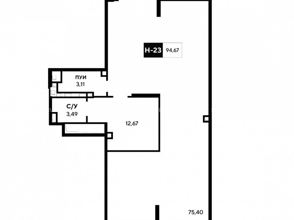 Площадь 94.7м², располагается на 1 этаже, отдельный вход , высота потолков - 4.25 м., без отделки, мощность электричества 9.46 кВт.