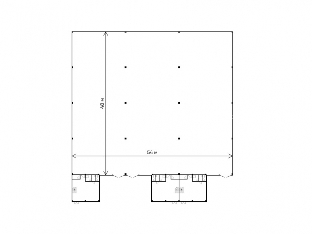 Площадь 3100 м²., располагается на 1 этаже, высота потолков 8 м., отделка чистовая, электрическая мощность 93 кВт.