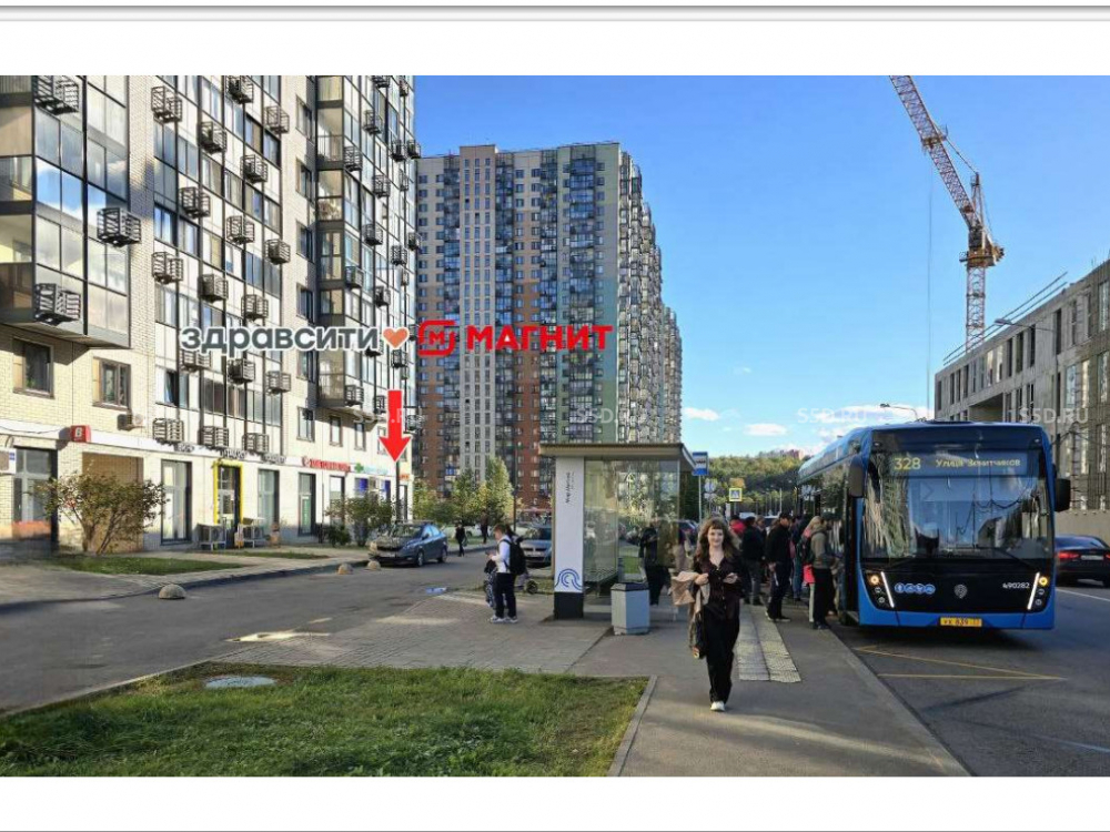 Угловое помещение расположено на входе в жилой массив, на пересечении пешеходных маршрутов. Зона интенсивного пешеходного трафика. Лучший торговый угол в ЖК.