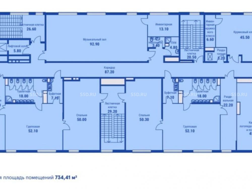 Площади по этажам: -1 этаж: 766,67 кв. м. (технические и вспомогательные помещения). 1 этаж: 1 324,09 кв. м.; 2 этаж: 734,16 кв. м.; 3 этаж: 734,41 кв. м. Высота потолка - 3,3 м. Электрическая мощность уточняются по запросу.