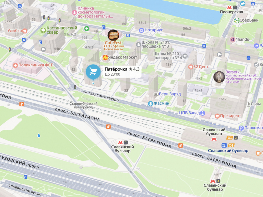 Ближайшая станция метро - Славянский бульвар, 7 минут пешком.