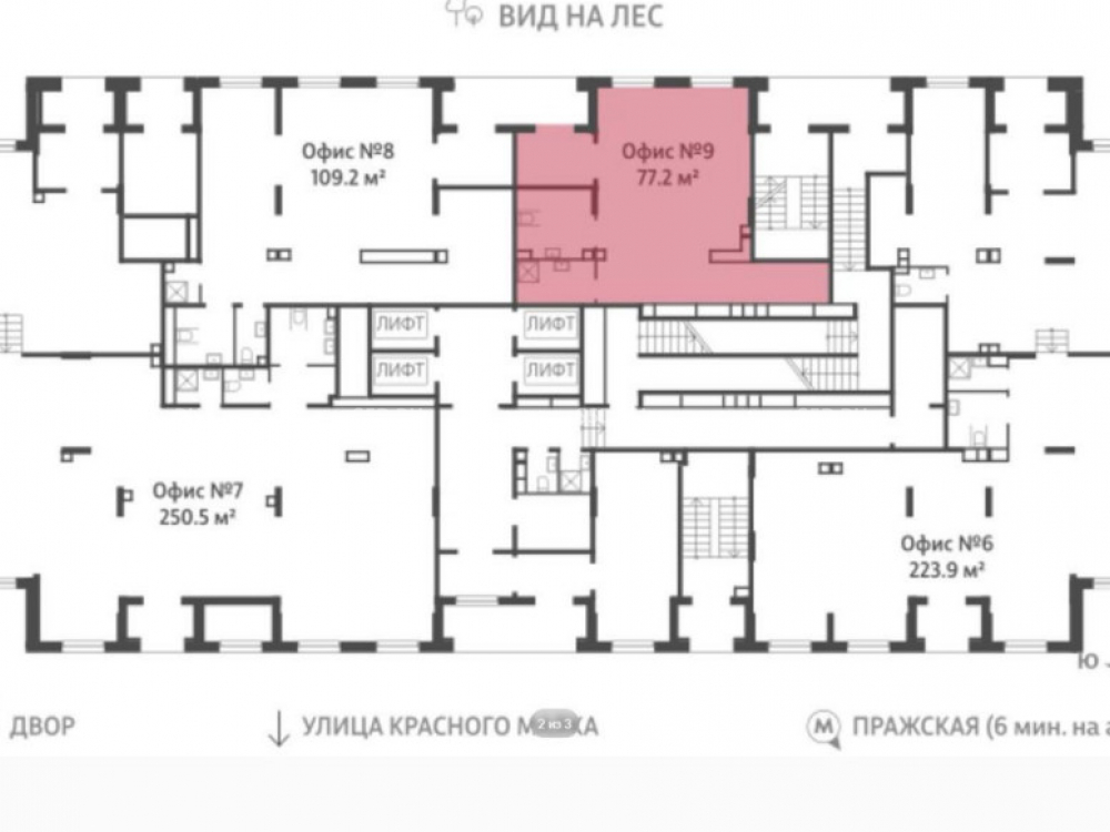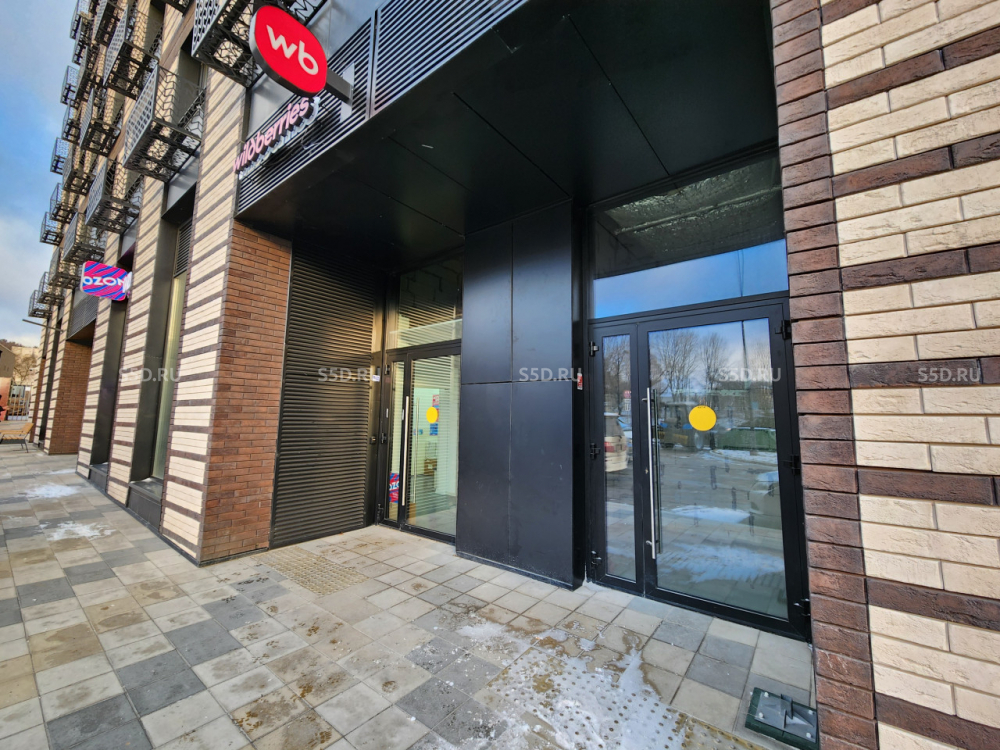 Общая площадь на 1 этаже - 77.2 кв.м. 1 этаж 23-этажного жилого дома. Отдельный вход с фасада. Мощность электроэнергии 15 кВт, можно увеличить. Высота потолков - 6.3 м. Есть парковка, витринные окна по фасаду.