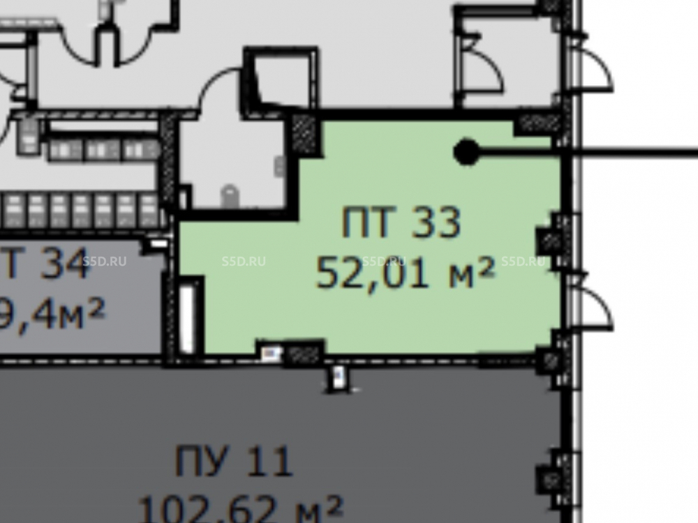 1-й этаж жилого дома. Общая площадь - 52 м². Отдельный вход с улицы. Высота потолков 4.8 м. Витринное остекление. Все центральные коммуникации.