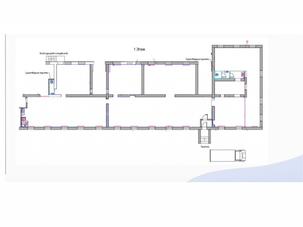 Общая площадь на 1 этаже - 486 кв.м. 1 этаж 5-этажного жилого дома. 2 отдельных входа. Мощность электроэнергии 65 кВт, можно увеличить. Высота потолков - 3 м. Есть парковка, витринные окна по фасаду. Зона погрузки/разгрузки.