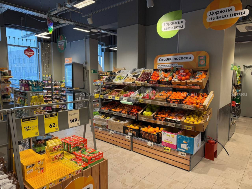 Технические характеристики: 1 этаж жилого многоэтажного дома, объединены два смежных помещения, угол дома. Общая площадь: 328 м2. Выделенная электрическая мощность: 63 кВт. Единственный полноценный супермаркет в этой части ЖК. Напротив помещения расположена большая парковка.