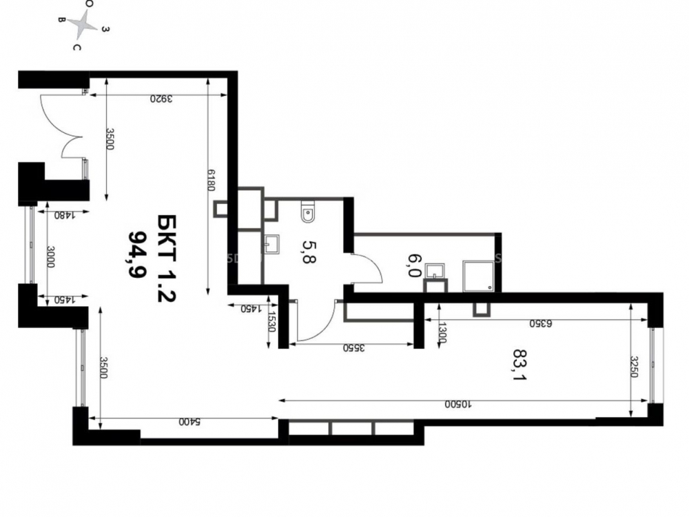 Общая площадь: 94.9 м2