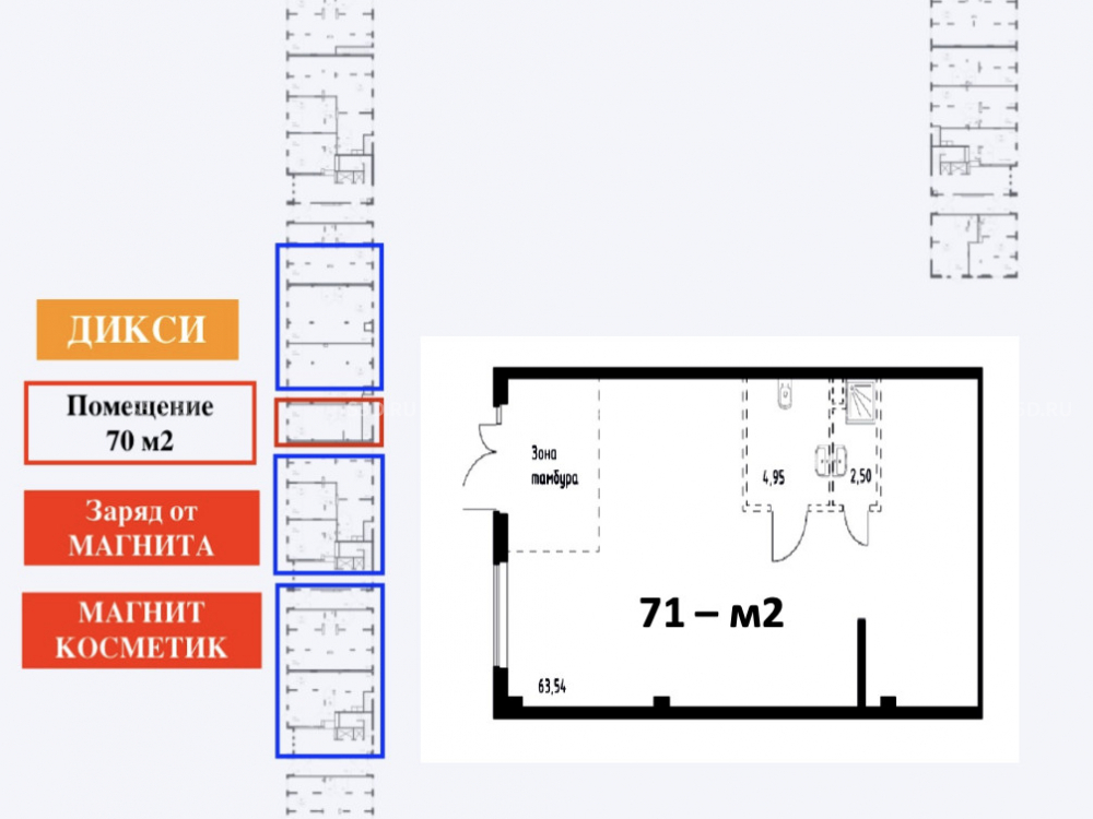Ближайшая станция МЦД - Щербинка, 5 минут транспортом. Помещение находится на 1-ом этаже жилого дома. Помещение находится между Дикси, Магнит Заряд и Магнит косметик в самой лучшей локации в ЖК, так как выходит на главную прогулочную аллею ЖК Остафьево. Основной трафик проходит мимо помещения к автобусной остановке. ЖК «Остафьево» на 5700 квартир - проект в Новой Москве от застройщика «Самолет». Комплекс располагается в 5 минутах на машине от станции МЦД-2 «Щербинка» и 10 минутах от станции метро «Бунинская аллея».