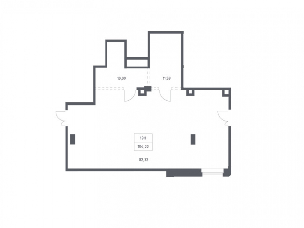 Площадь 104 м²., высота потолков 3.2 м. - 6.2 м., витринное остекление, без отделки, место для вывески. Мощность электричества 18.72 кВт.